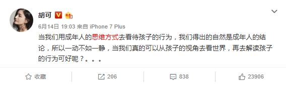 正如胡可在微博中所说:“当我们用成年人的思维方式去看待孩子的行为,我们得出的自然是成年人的结论,所以一动不如一静,当我们真的可以从孩子的视角去看世界,再去解读孩子的行为可好呢?”。