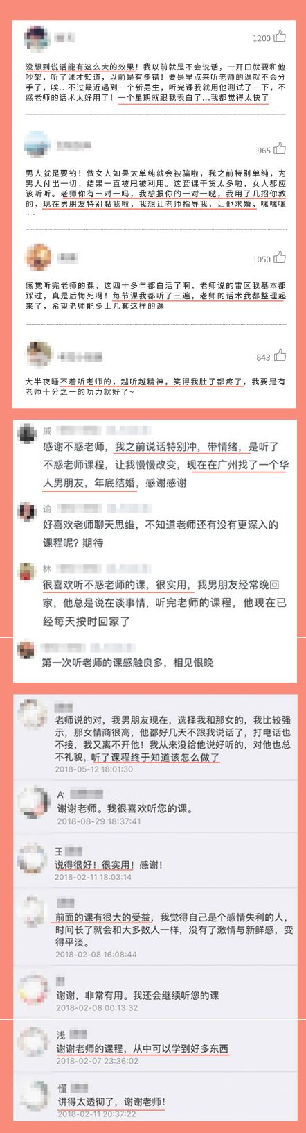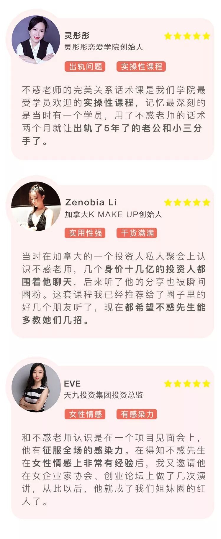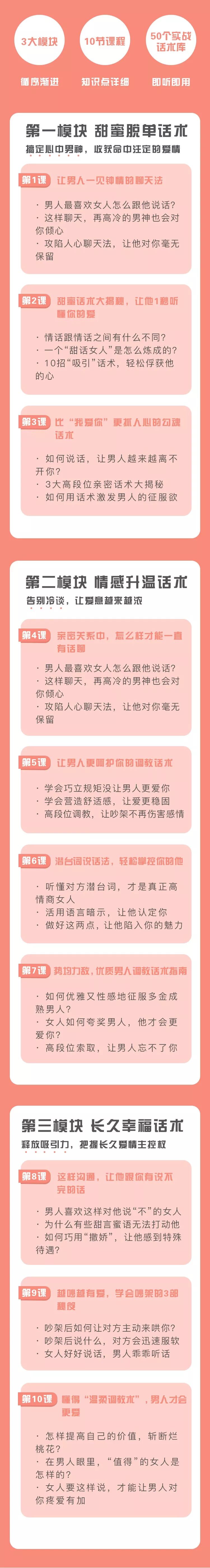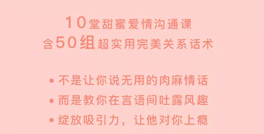 那么,不妨跟着不惑先生学习高情商女人的秘密武器——十大完美关系话术,10节课程,3大模块,教你学会用男人的心理跟男人聊天,掌握句句击中男人心的话术操控法,让你们的爱情快速升温~