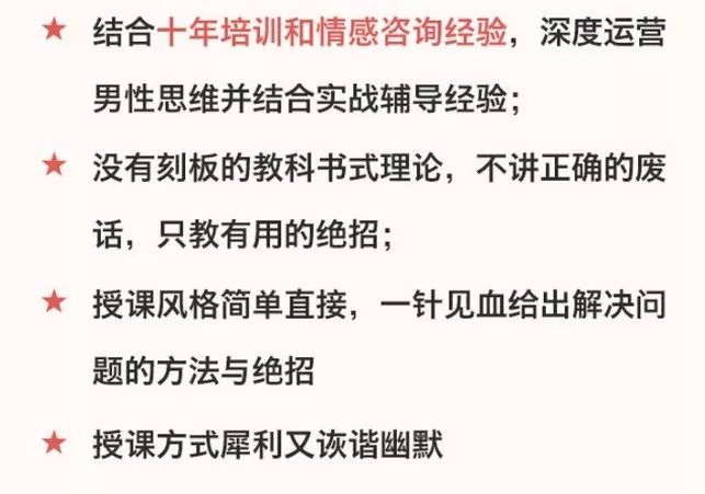 十年情感咨询和实战辅导经验,他们不说没用的理论,只教有效的方法,以一针见血又幽默的方式告诉你如何正确建立自己的框架,把男人心牢牢抓在手里。