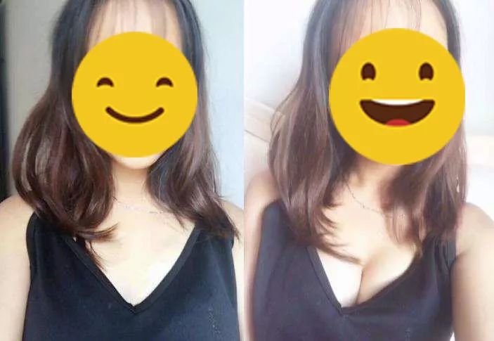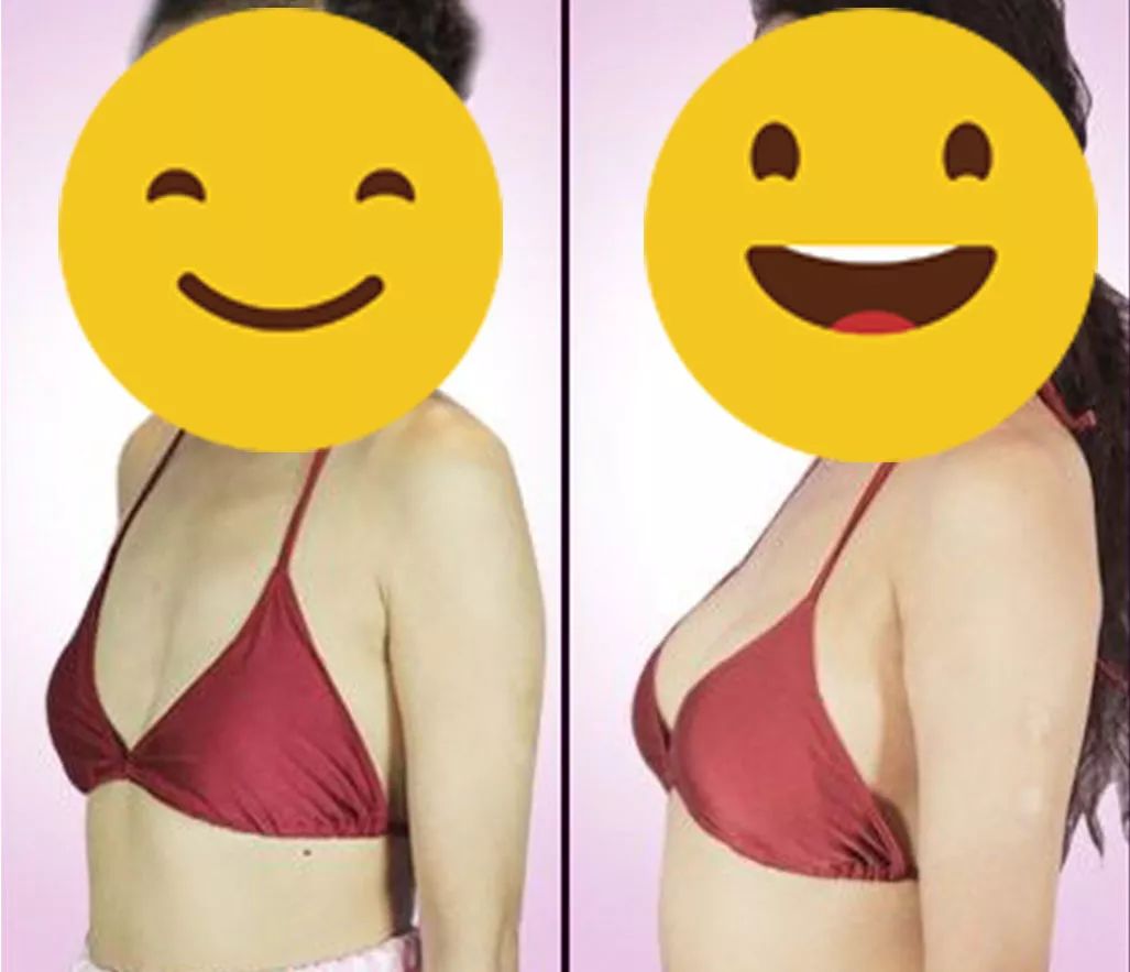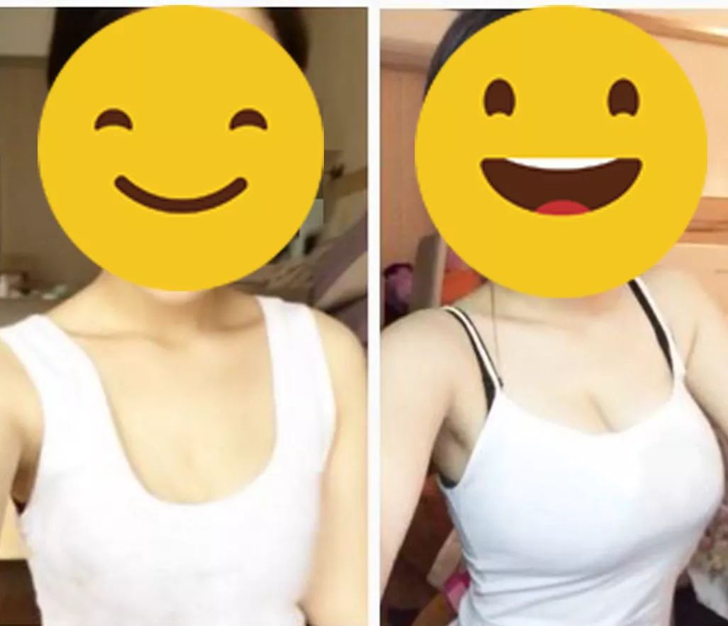 这是我们某个女同事针对左胸,练习5分钟的效果对比,简直把她吓坏了!赶紧把右胸也一起练习!(嗯,我们现在每天都停不下来了。。)