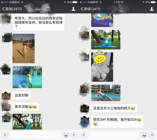 (学员:练丰胸瑜伽前 & 练丰胸瑜伽后)