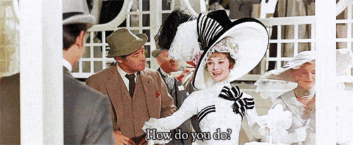 有一次,语音学家希金斯在街上遇见赫本,听到她难听的声音后和朋友打赌,说自己可以通过声音训练,让口音浓重的卖花女,在游园会之前摇身一变上流社会的名媛淑女。