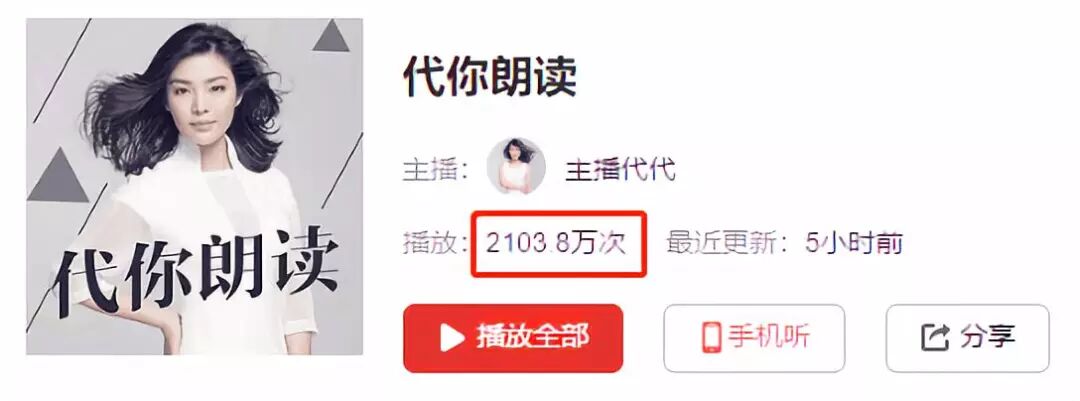 代代是拥有千万人气的“疗愈系主播”。她创办的音频节目《代你朗读》,累计点击量超过1亿,粉丝数量破千万。