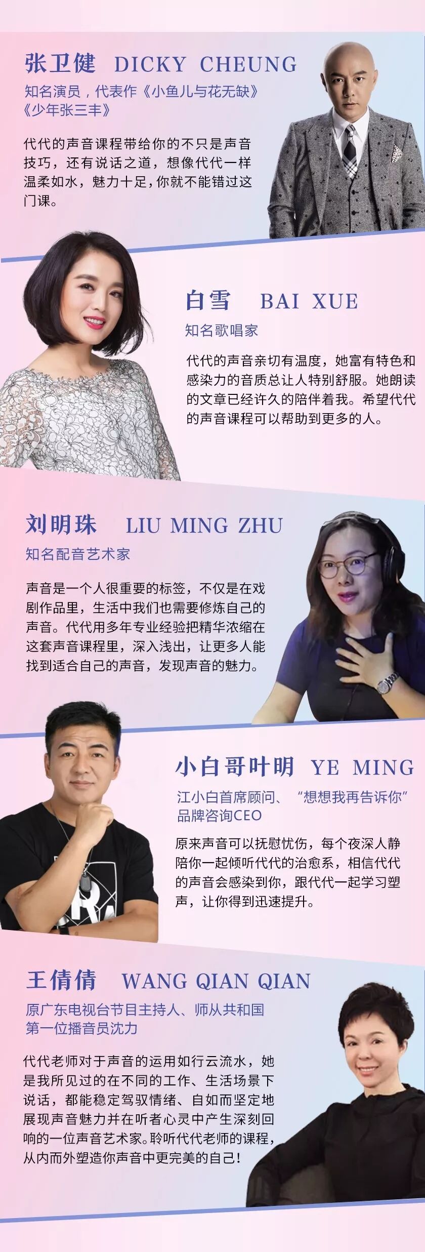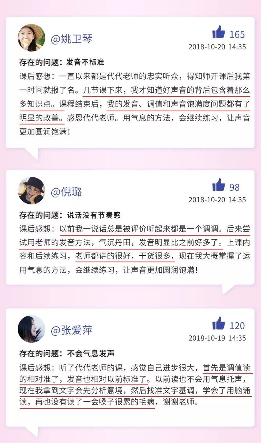 为了帮助更多的人摆脱声音问题,代代将其声音美学艺术总结成一套线上课程《12节好声音速成课:绽放女人魅力,让你一开口就打动他的心》