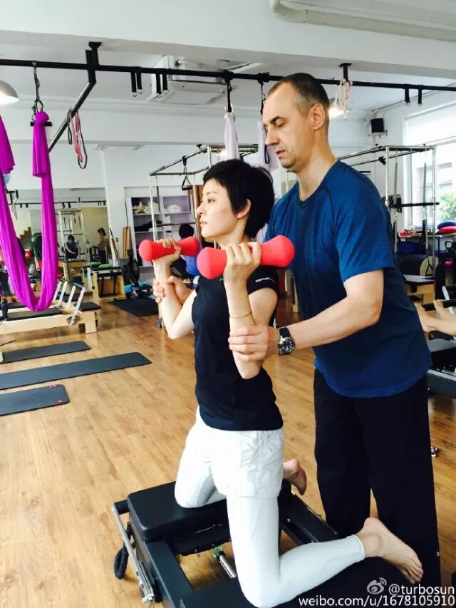 也许有人已经注意到,时隔近两年,孙俪所发的关于普拉提的微博,图中指导她练习的,都是同一个人——外籍导师布朗。