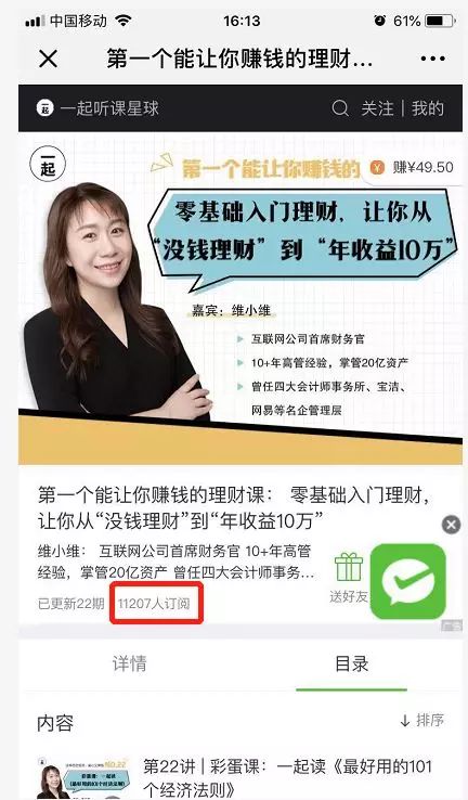 此前,小维曾推出过几节专门针对理财小白的课程,吸引了20000多个学员的跟随和订阅,而且备受好评。