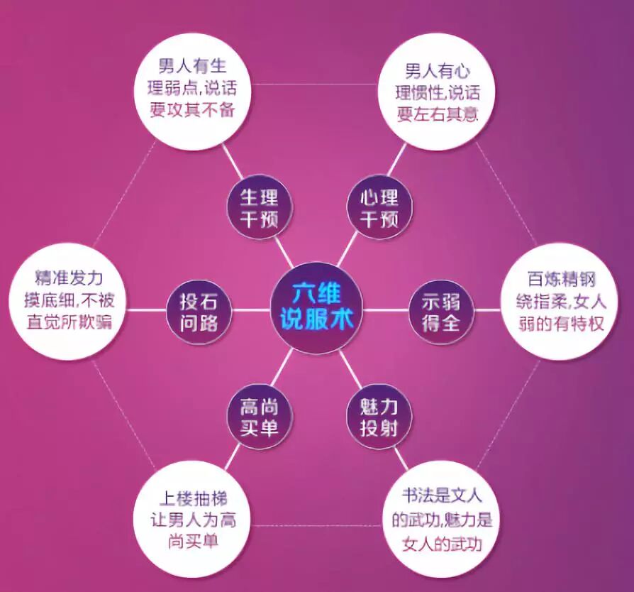 什么是“6维收服术”?生理干预、心理干预、示弱得全、魅力投射、高尚买单、投石问路6个必胜绝招,让男人愿意听你的,愿意为你付出爱和陪伴。