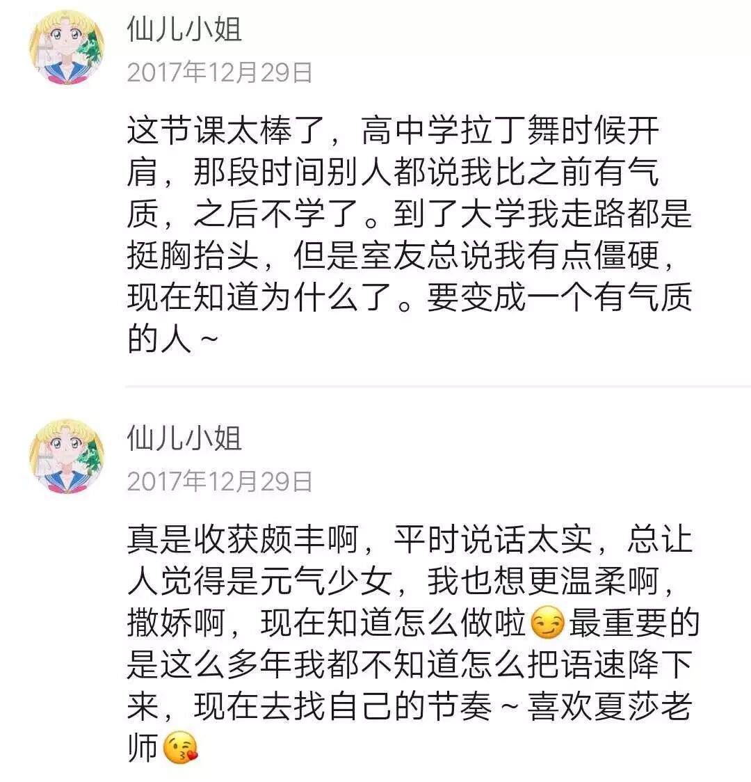 我与夏莎是新东方曾经的战友,聪明努力,对于女性魅力的理解非常深刻,她不光能成为大家外表提升的导师,也是很好的精神导师。