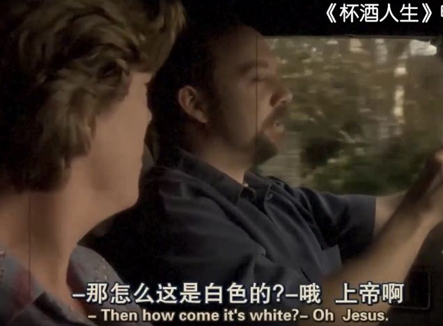 《杯酒人生》电影中有一幕是Miles跟Jack在车上关于葡萄酒的对话。